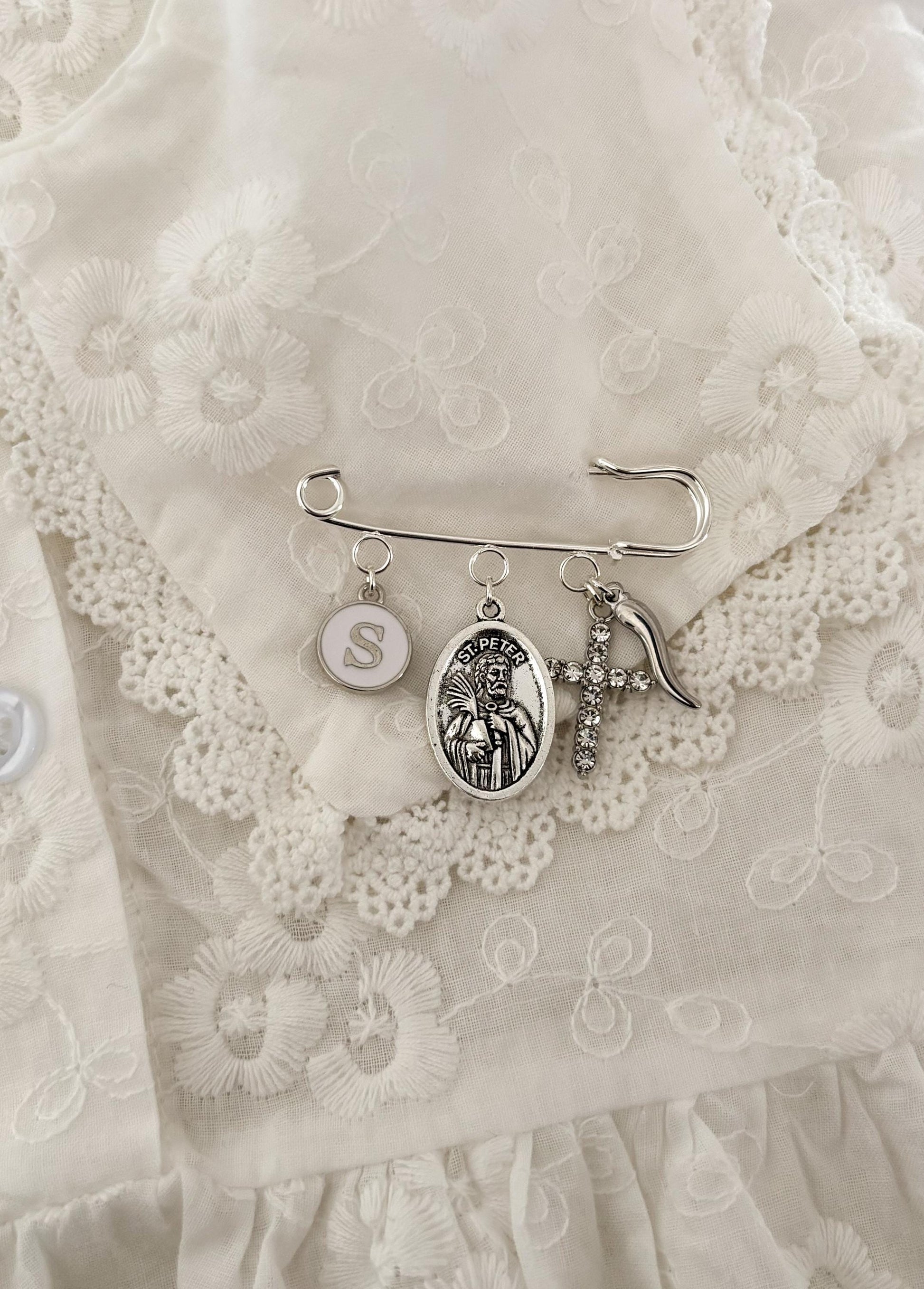 Personalized St Peter Baby Pin: Silver Catholic Christening Gift