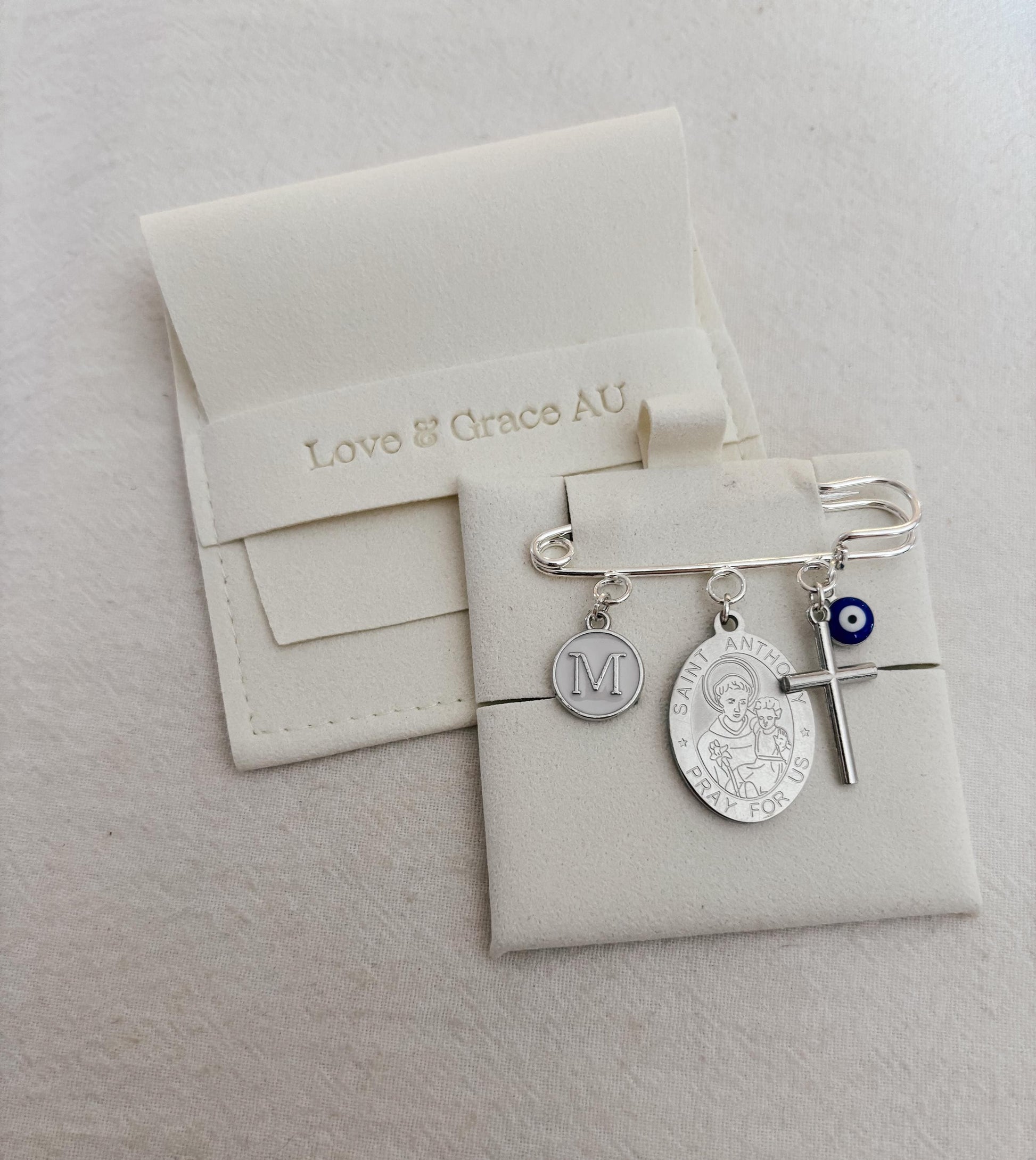 St Anthony Personalized Baby Pin: Christening Gift, Silver Catholic Keepsake