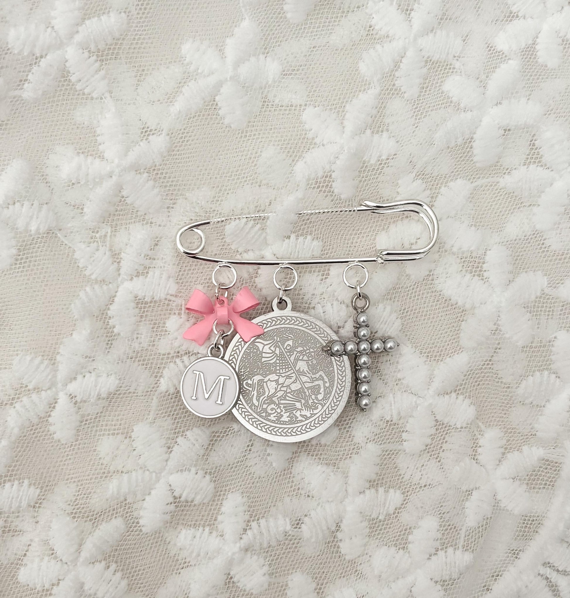 St George Personalized Baby Pin: Christening Gift, Silver Catholic Keepsake
